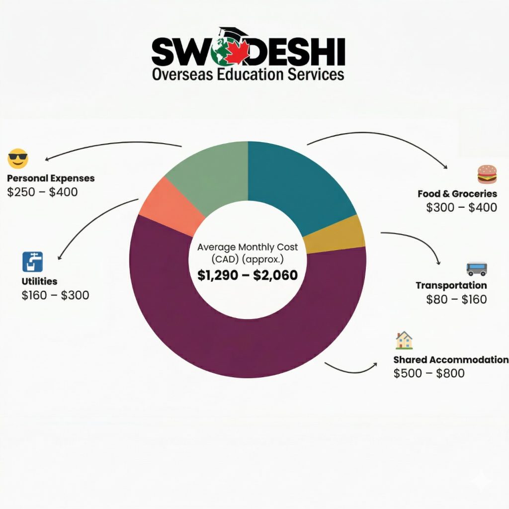 • Living cost: CAD 8,000 – CAD 12,000 per year